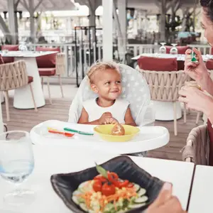 El servicio de Baby Club Med® está disponible a un coste adicional a su paquete Todo Incluido en una selección de villas.